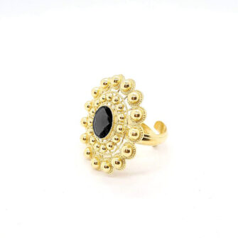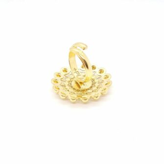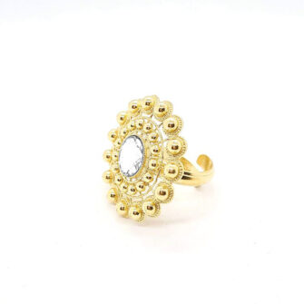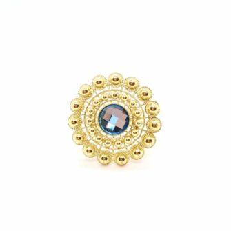 Un anillo de botón charro diferente con un toque más fresco y moderno gracias al cristal de color azul celeste engarzado en el propio botón. Así como su chapado en oro. Por no hablar de su tamaño que aunque no es para todas, puesto que, como siempre, hay quien prefiere anillos charros más “discretitos” pero sí que ésta tendencia tiene una especial relevancia entre ??♀️ chicas jóvenes.