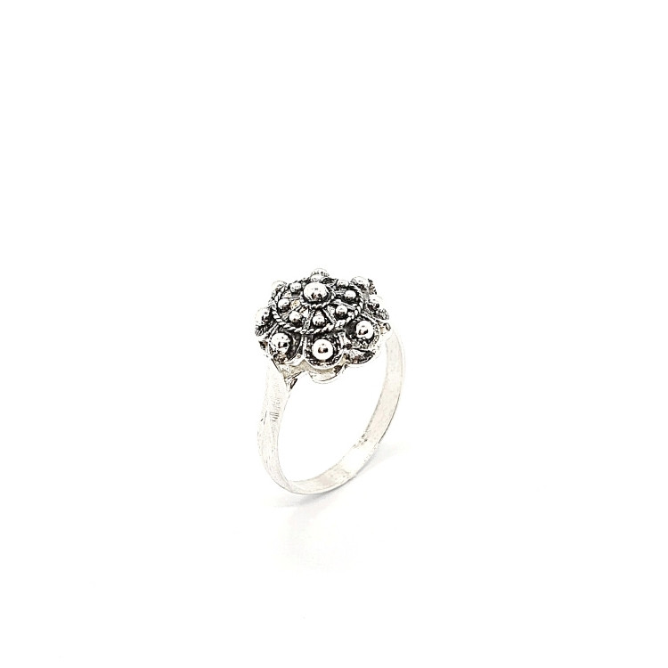 Este modelo de anillo, hecho en auténtica plata de ley, no ha cambiado desde los tiempos de nuestros antepasados. Es el mismo que nuestra querida abuela lucía con orgullo, un recordatorio de su tierra natal y de las historias que solíamos contarnos. Con un diámetro de 12 mm en el botón charro y dos filas de bolas, este anillo no sólo es estético sino también robusto. Asentado y soldado en un “aro supletorio”, reforzado y anclado por cuatro puntos, ofrece resistencia y solidez, protegiéndolo contra tirones y «enganchones».