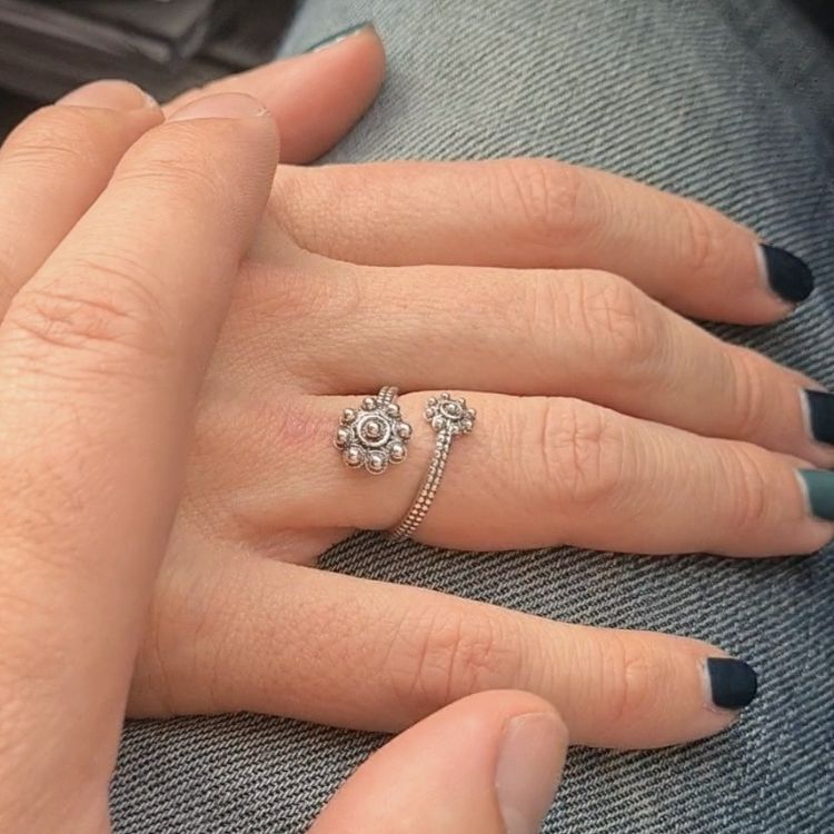 Anillo abierto extremadamente cómodo, lo que permite intercambiarlo de dedo. Despreocúpate de la medida.