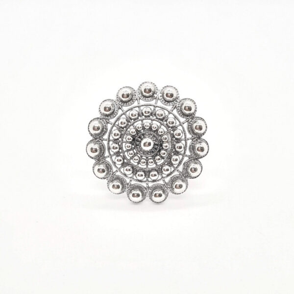 En Ramos Joyería, te presentamos una pieza única que destaca por su filigrana charra y su símbolo distintivo, el botón charro. Este anillo charro plata XXL no solo rinde homenaje a la tradición y cultura de Salamanca, sino que también es un elegante símbolo de identidad.