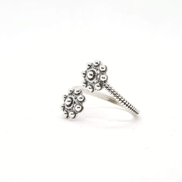 Este anillo destaca por su diseño ajustable. Hecho en plata de ley, garantiza un ajuste perfecto para cualquier tamaño. Los dos botones charros de 9 mm en cada extremo aportan un toque de elegancia. Representan la rica tradición artesanal de Salamanca.