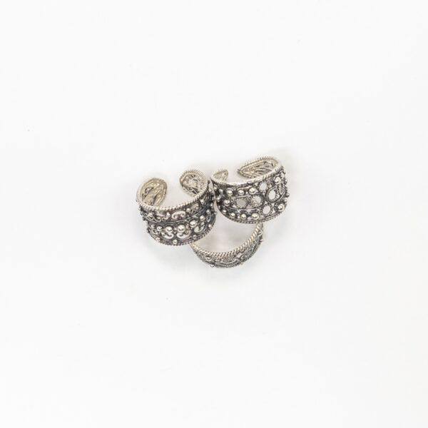 Anillo de filigrana charra abierto en plata de ley, ajustable a cualquier talla de dedo.