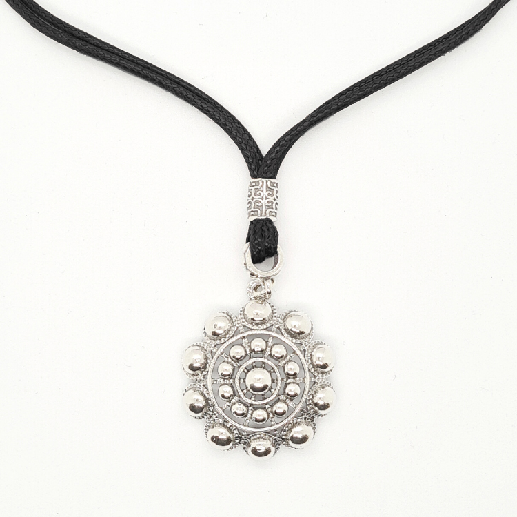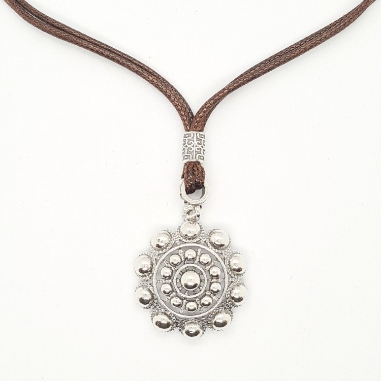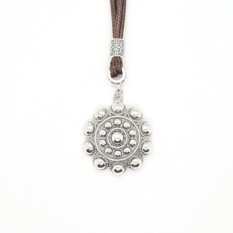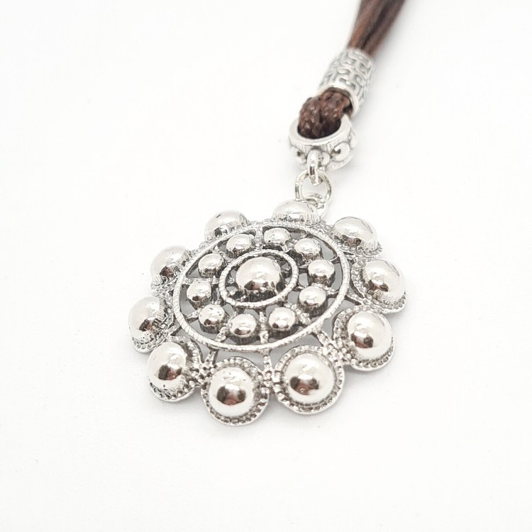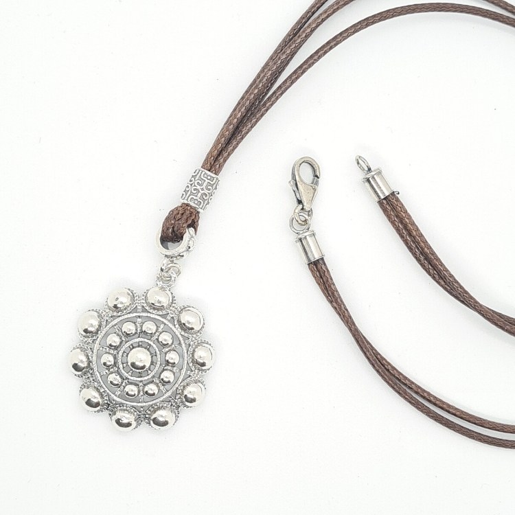 Colgante de botón charro en plata de ley con cordón marrón o negro.