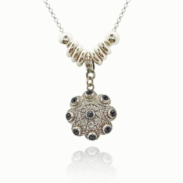 Gargantilla en plata de ley de botón charro con cristales disponibles en distintos colores:
