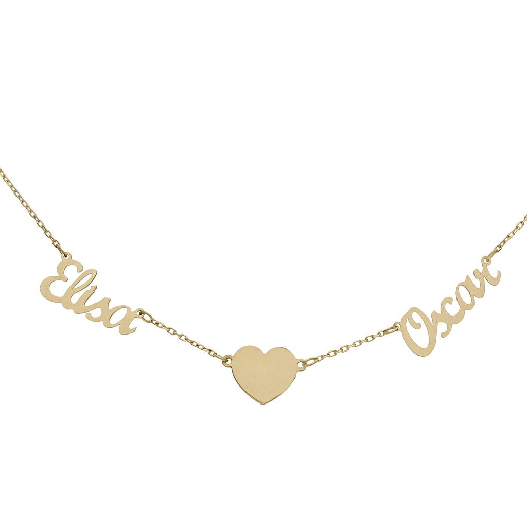 Dos nombres, un corazón y una historia que merece ser contada. La Gargantilla con dos nombres + corazón oro es una joya pensada para simbolizar la unión entre dos personas de una forma elegante y muy personal.