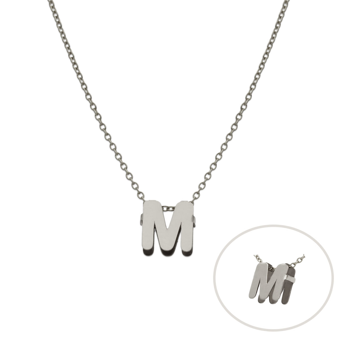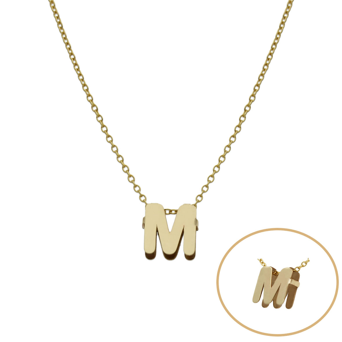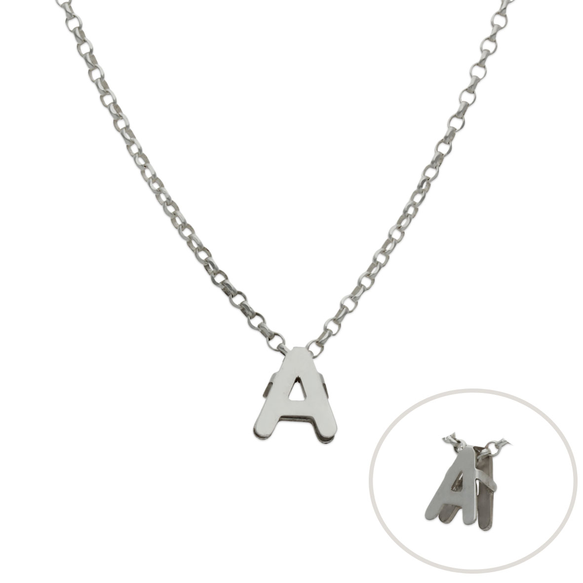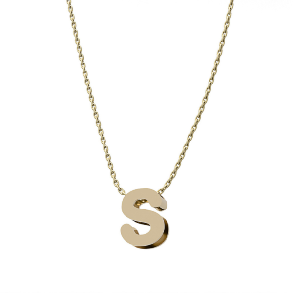 Gargantilla con letra inicial. Terminación en brillo. Alto de la letra: 7mm.