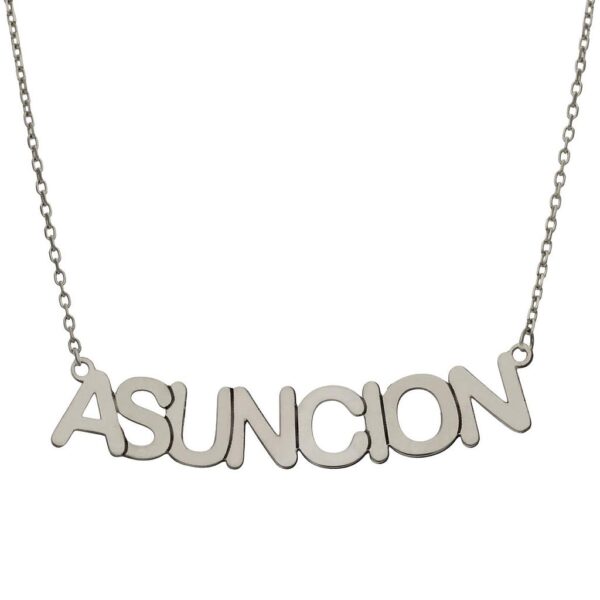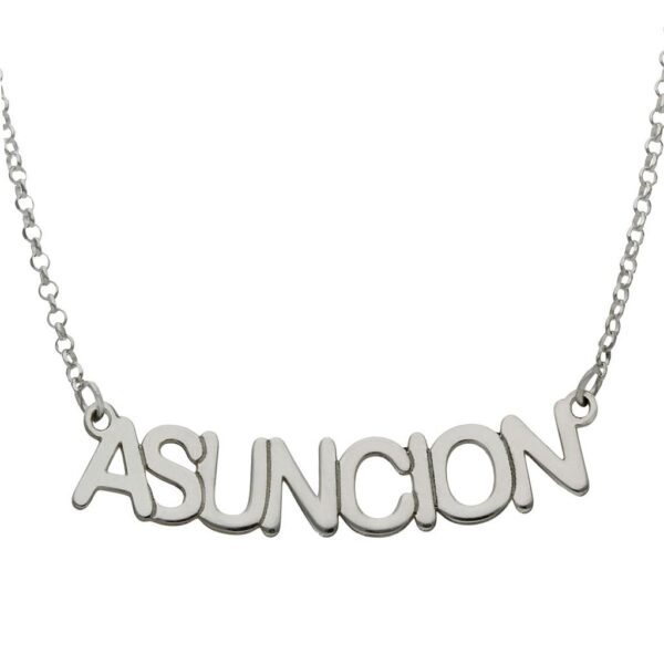 Gargantilla con nombre grande personalizado. Alto de letra: 7mm. Terminación en brillo.