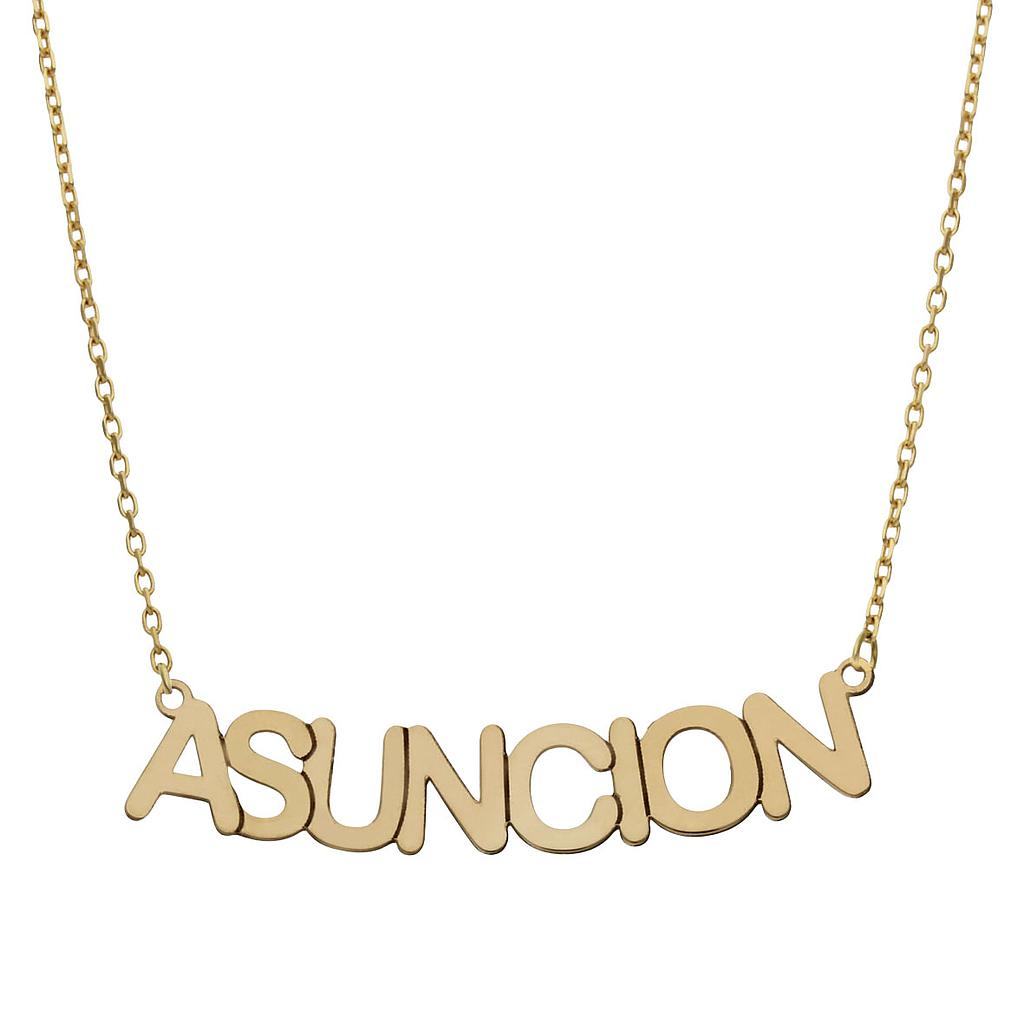 Gargantilla con nombre mediano personalizado. Alto de letra: 6.50mm. Terminación en brillo.