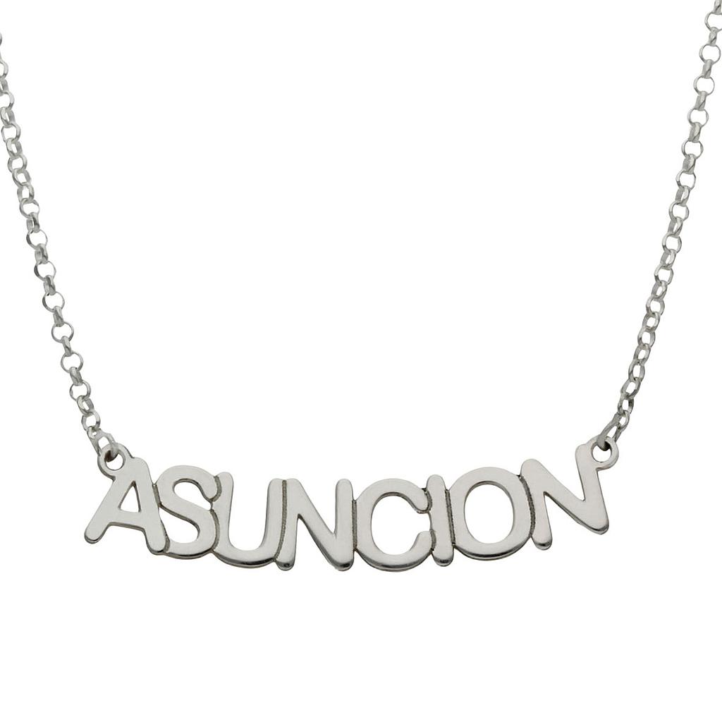 Bonita gargantilla con el nombre en letra mediana. Disponible en oro, oro blanco y plata de Ley. Ideal para regalar por el día de la madre o en otra fecha señalada.