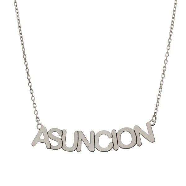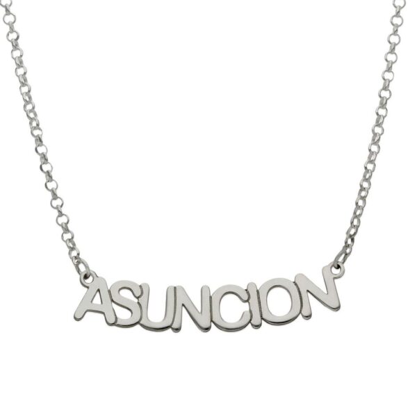 Gargantilla con nombre pequeño personalizado. Alto de letra: 5.50mm. Terminación en brillo.
