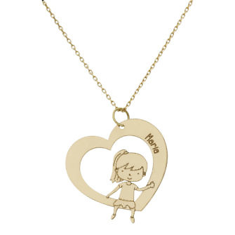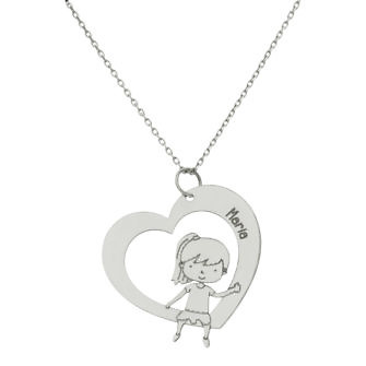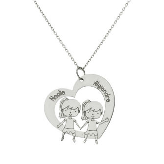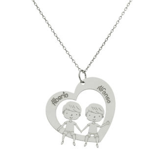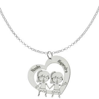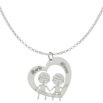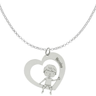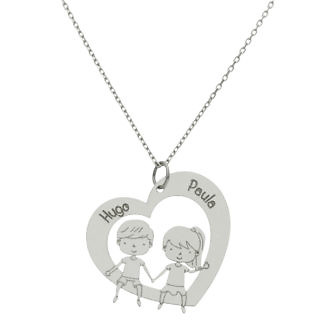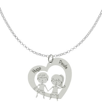 Original colgante en forma de corazón con niño, niña o combinación de ambos en diferentes posibilidades. Además personalizamos el corazón con el nombre o nombres que desees. Es perfecto para regalar por el día de la madre o con motivo de una fecha especial. Es la joya perfecta para llevar siempre a tus hijos contigo.