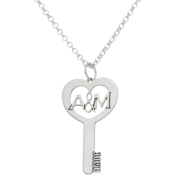 Si te gustan los colgantes en forma de llave, esta gargantilla te va a encantar. Es una joya preciosa en forma de llave y además la puedes personalizar con las dos iniciales que desees. Es perfecta para regalar a tu pareja y poner la inicial de cada uno en representación de vuestro amor. Dicen que cuando regalas un colgante con forma de llave estas entregando la llave que abre tu corazón y por lo tanto es un símbolo de confianza.