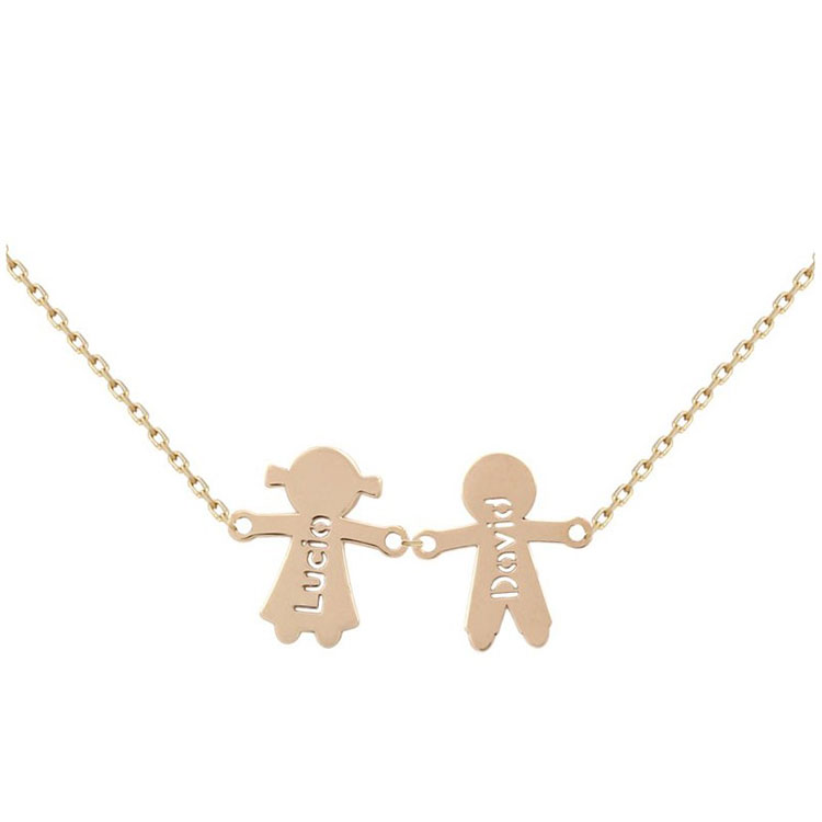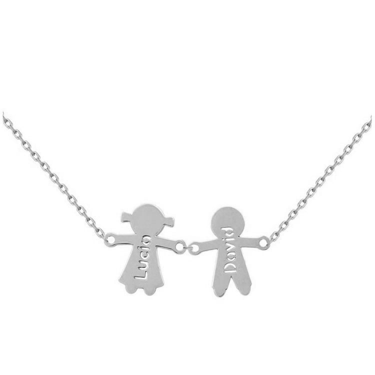 Gargantilla de niña + niño con opción de personalizar con nombre grabado. Terminación en brillo.