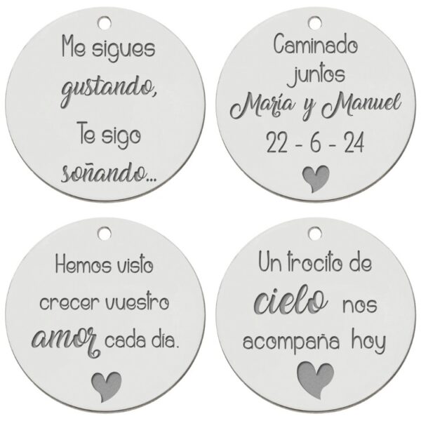 Ya sea como un puente entre generaciones, recuerdo de un ser querido que mira desde el cielo, portando un mensaje secreto de tu pareja, o como un recuerdo de amistad, la Chapa para Ramo de Novia Personalizada enriquece tu boda con un simbolismo profundo y personal. Descubre cómo este detalle puede hacer tu celebración aún más memorable.