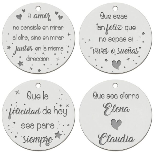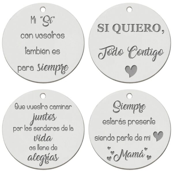 Más que un adorno, esta medalla personalizada es un recuerdo tangible de tu día especial. Se presenta en un delicado estuche con cinta de terciopelo rosa empolvado, listo para ser unido a tu ramo. Ideal para recordar a seres queridos o portar mensajes significativos, esta pieza destaca por su versatilidad y valor emocional.