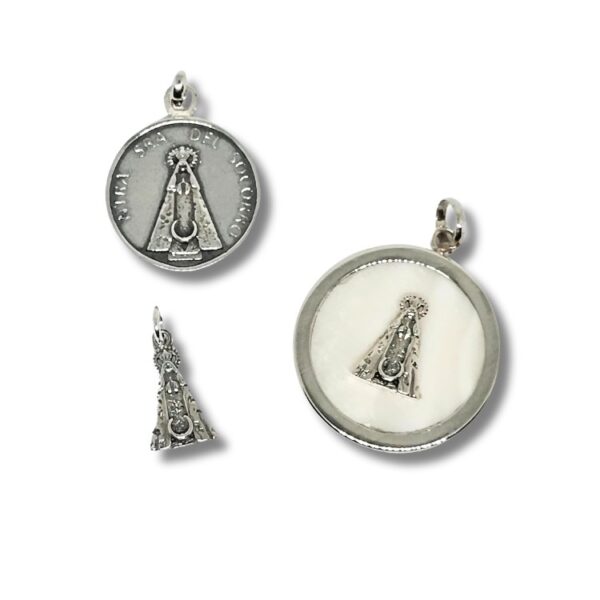 Medalla Virgen del Socorro en Plata y Nácar – Un Tesoro de Fe y Elegancia