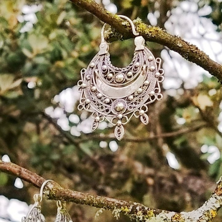 Pendientes, aros de filigrana en plata 925 ml oxidada con aspecto antiguo.