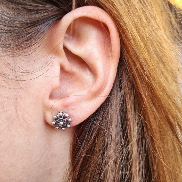 Pendientes de botón charro o filigrana charra en plata de ley.