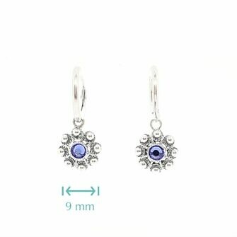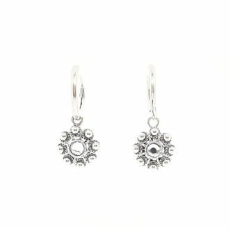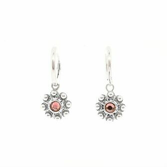 Unos pendientes de botón charro diferentes con un toque más fresco y moderno gracias a los cristales de colores engarzados en el propio botón.