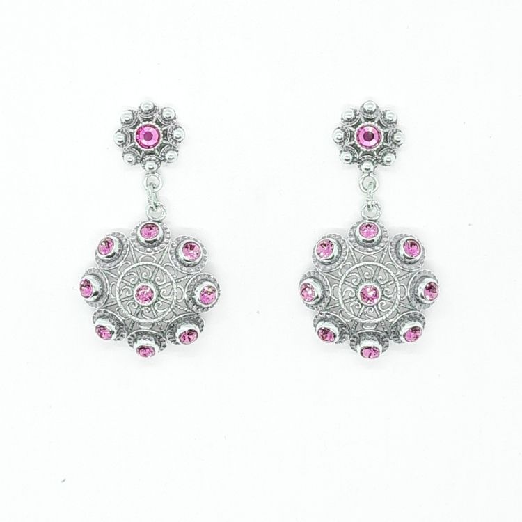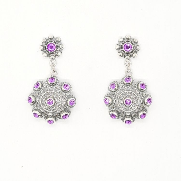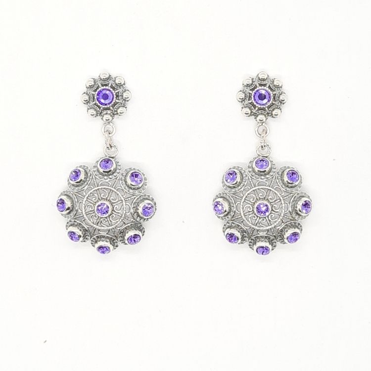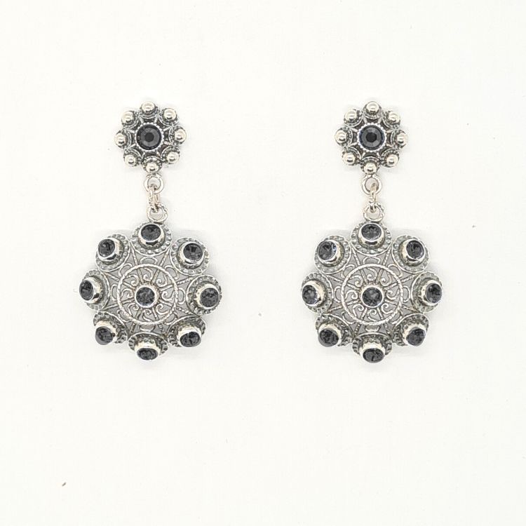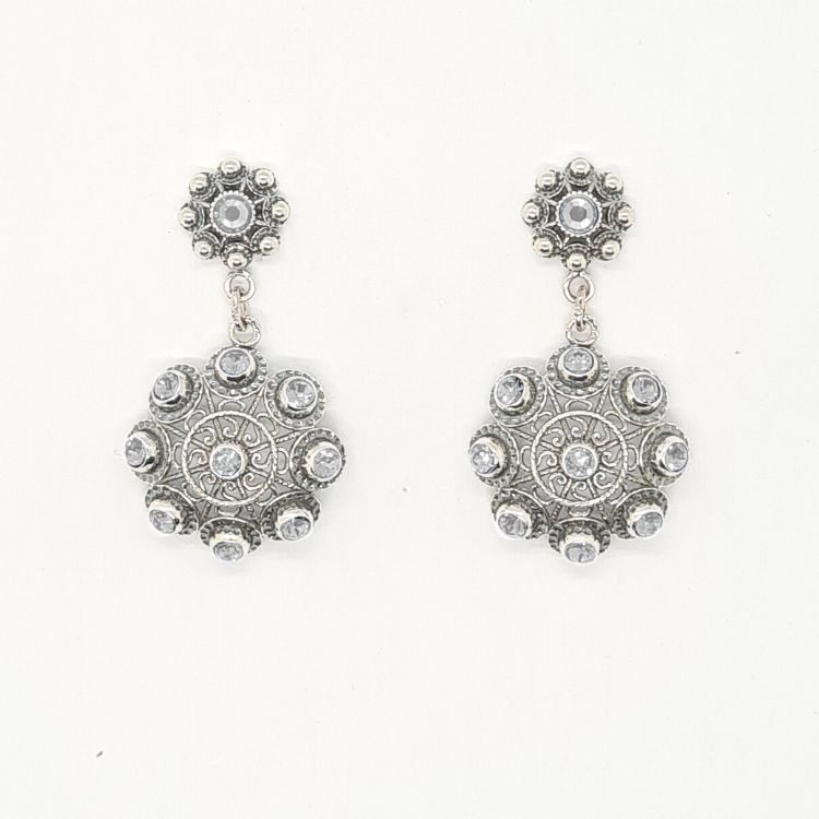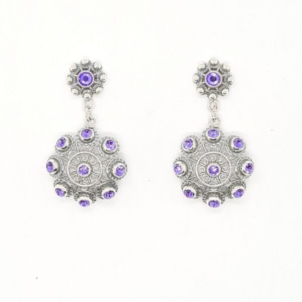HomeTiendaFiligrana charraPendientes charros dos botones plata cristales color