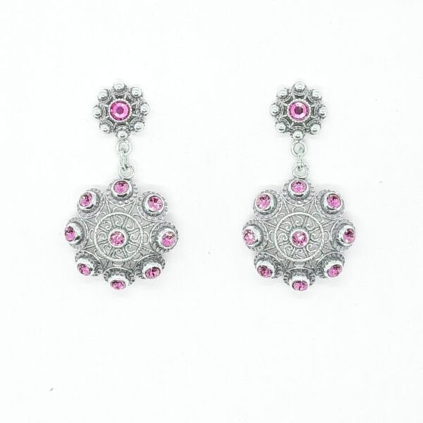 Pendientes en plata de ley con dos botones charros con cristales engarzados disponibles en distintos colores: