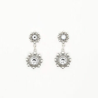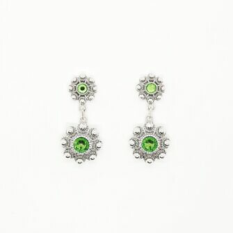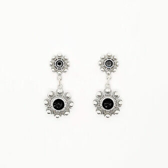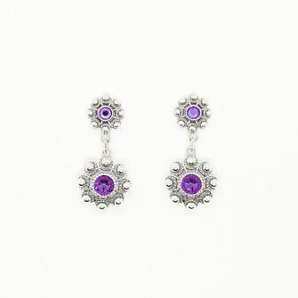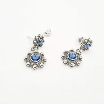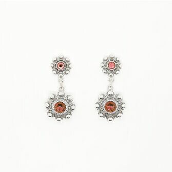 Pendientes charros con dos bitones charros en plata dey y cristal de color en el centro de cada botón.