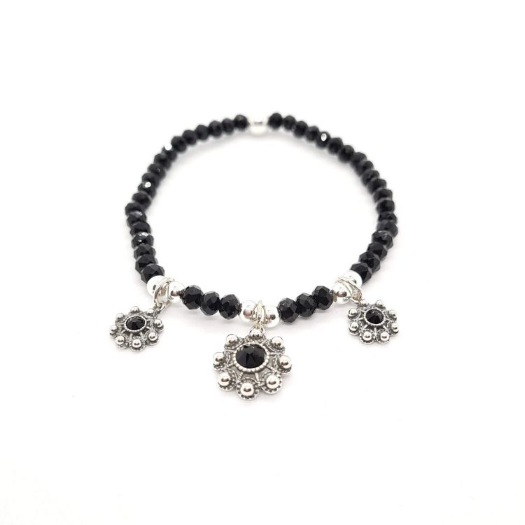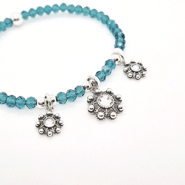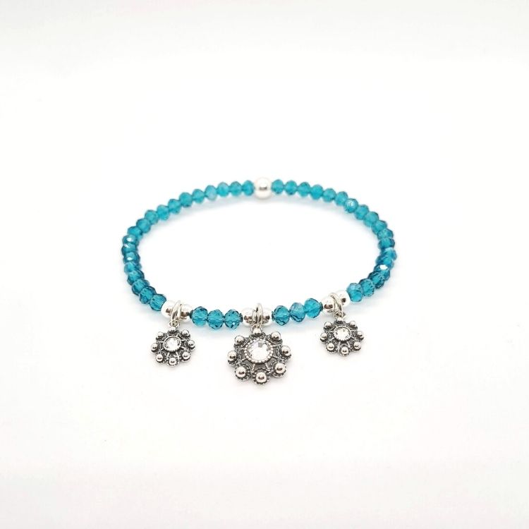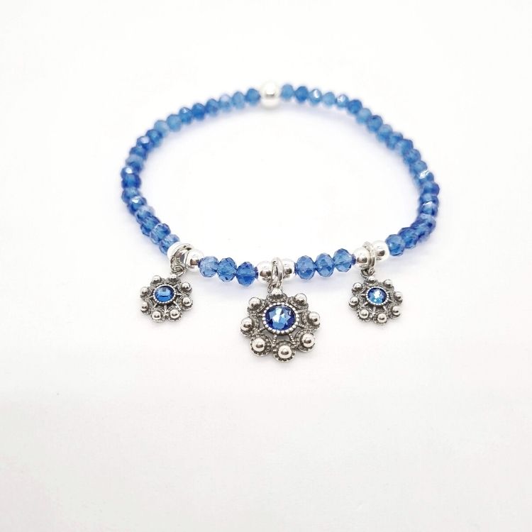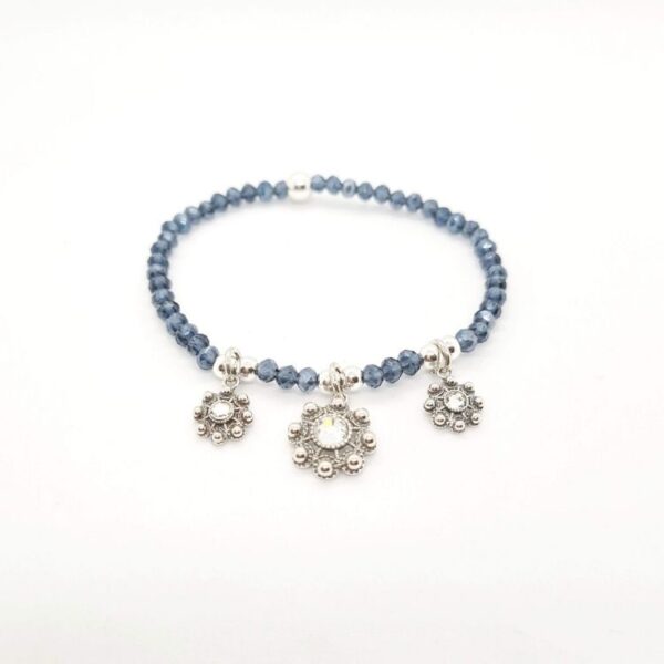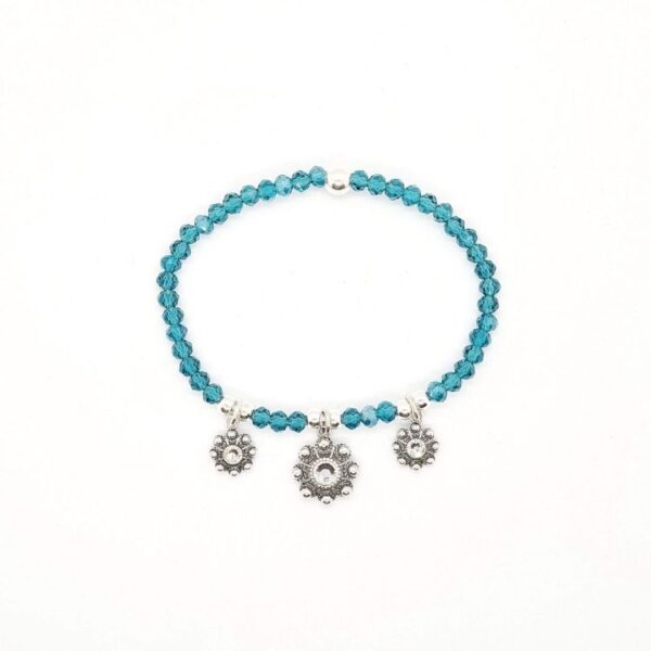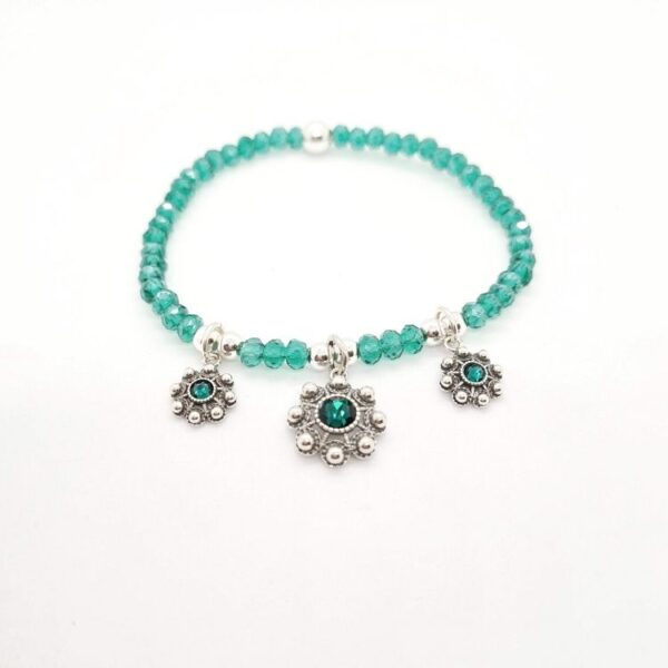 Pulsera con tres charms charros en plata de ley y cristal de color en cada botón charro.