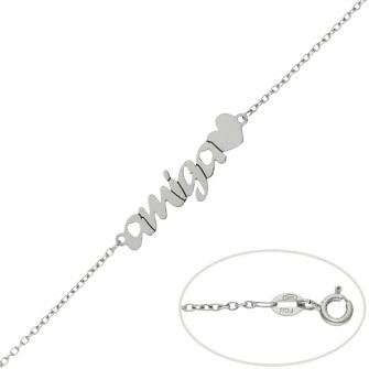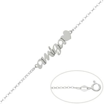 Pulsera amiga + corazón. Alto letra: 7mm. Ancho: 32mm. Terminación en brillo.