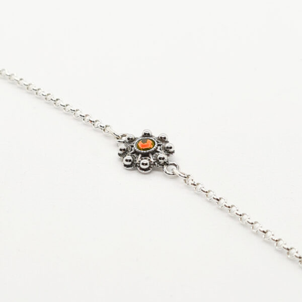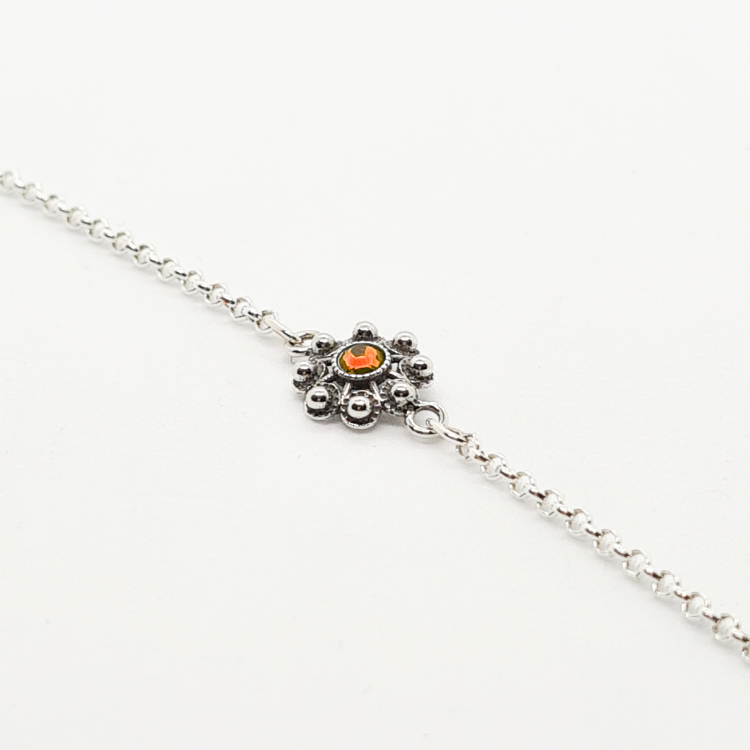 Pulsera charra diferente con un toque más fresco y moderno gracias al cristal de color engarzado en el botón.