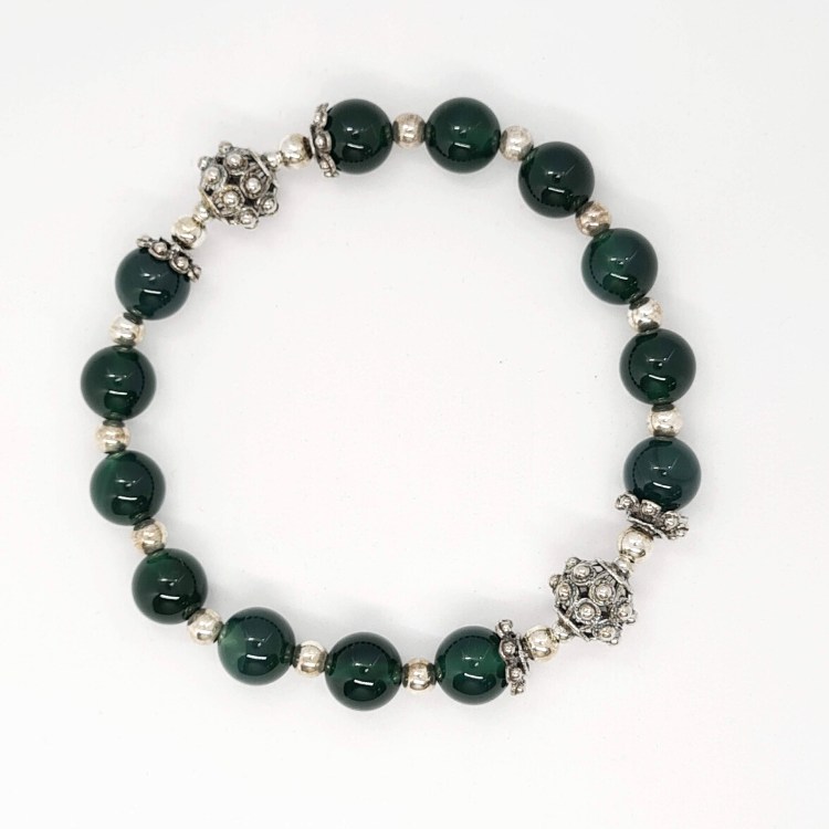 HomeTiendaFiligrana charraPulsera Charra piedra natural Jade Verde y dos bolas charras