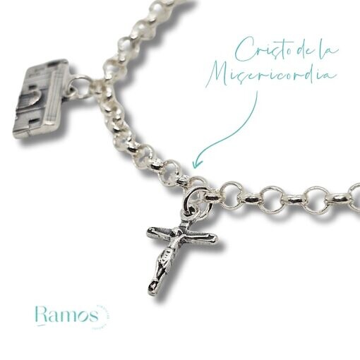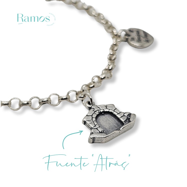 La pulsera está elaborada en plata de ley 925, con cadena tipo rolo. De eslabones redondos, pensada para el uso diario y con un cierre cómodo y seguro. Los abalorios, también en plata, se mueven ligeramente al andar, como si cada paso hiciera sonar un recuerdo.