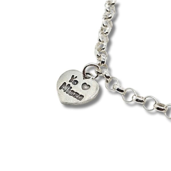 - Corazón con el nombre «Mieza» : Nada más directo que un corazón grabado con el nombre de tu pueblo. Es un símbolo de pertenencia, de amor eterno por Mieza de la Ribera y de orgullo por llamarlo hogar. Este abalorio es perfecto para quienes, aunque estén lejos, llevan siempre a su tierra en el corazón.