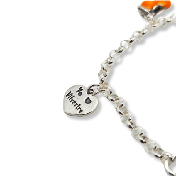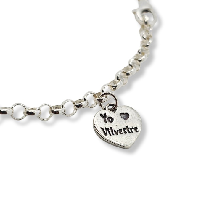 Corazón con la inscripción «Vilvestre» : El corazón simboliza el amor y el arraigo de los vilvestrinos por su tierra. Llevar este abalorio cercano al pulso es llevar a Vilvestre en el corazón, recordando siempre las raíces y la identidad que unen a quienes han nacido o se sienten conectados con este rincón de Salamanca.