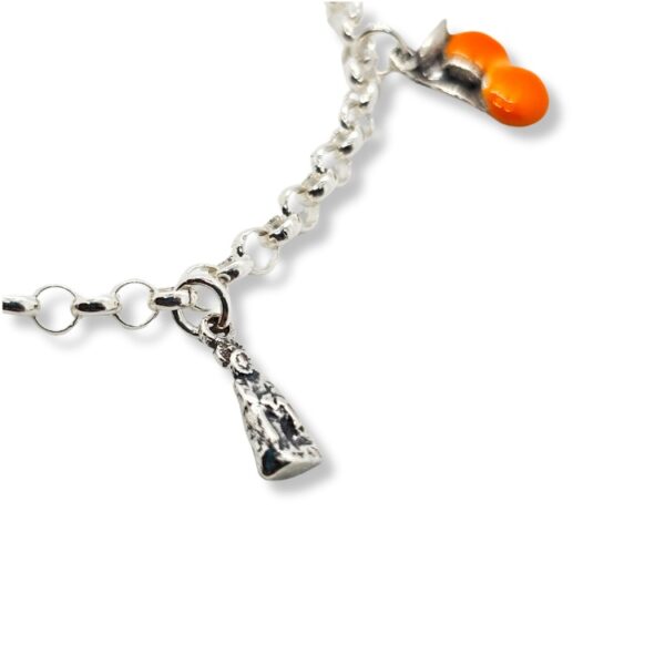 Naranjas : Vilvestre, gracias a su microclima privilegiado, es tierra fértil para cítricos, especialmente naranjas. Este abalorio celebra la tradición agrícola del pueblo y la dulzura de sus frutos, símbolo de prosperidad y abundancia que caracteriza a la región. Además este abalorio lleva consigo el color vívido del producto estrella de Vilvestre, realizado con esmalte a fuego.