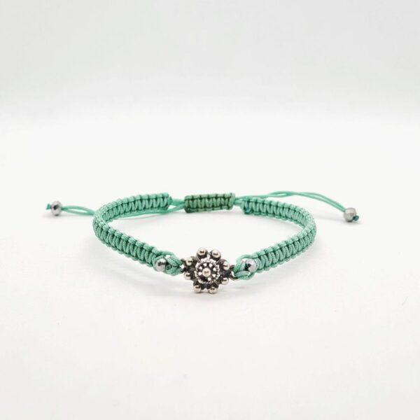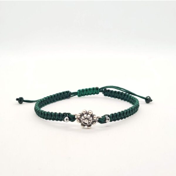 Cada pulsera es una obra de arte, con un hilo de color trenzado, con la técnica de macramé, que se adapta a la muñeca con facilidad. El botón charro de plata de 10 mm, meticulosamente labrado, es un pequeño recordatorio de la riqueza artística y simbólica de Salamanca. Elige entre una gama de colores vibrantes y lleva contigo una pieza que no solo adorna, sino que cuenta una historia.