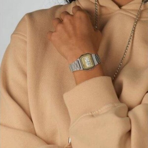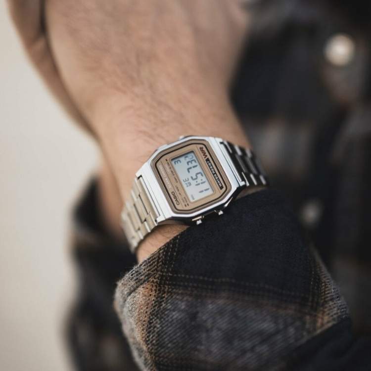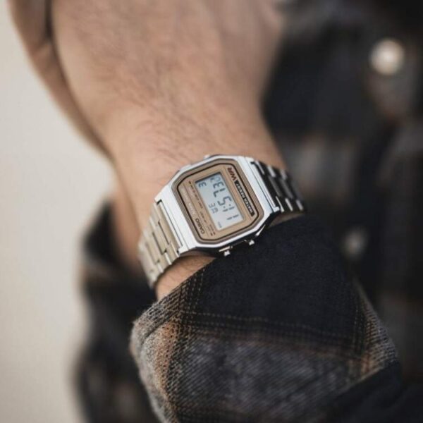 Reloj Casio Vintage pantalla dorada y cadena plateada