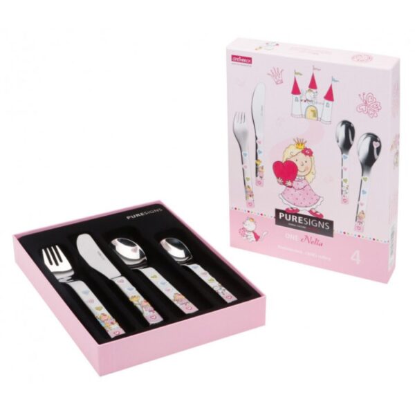 Set 4 cubiertos infantil princesa Nelia acero inoxidable